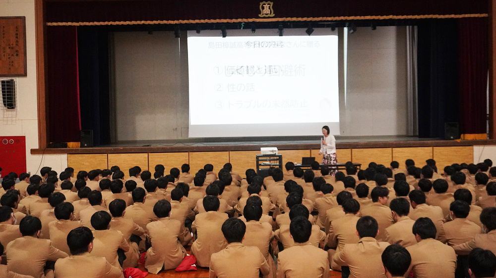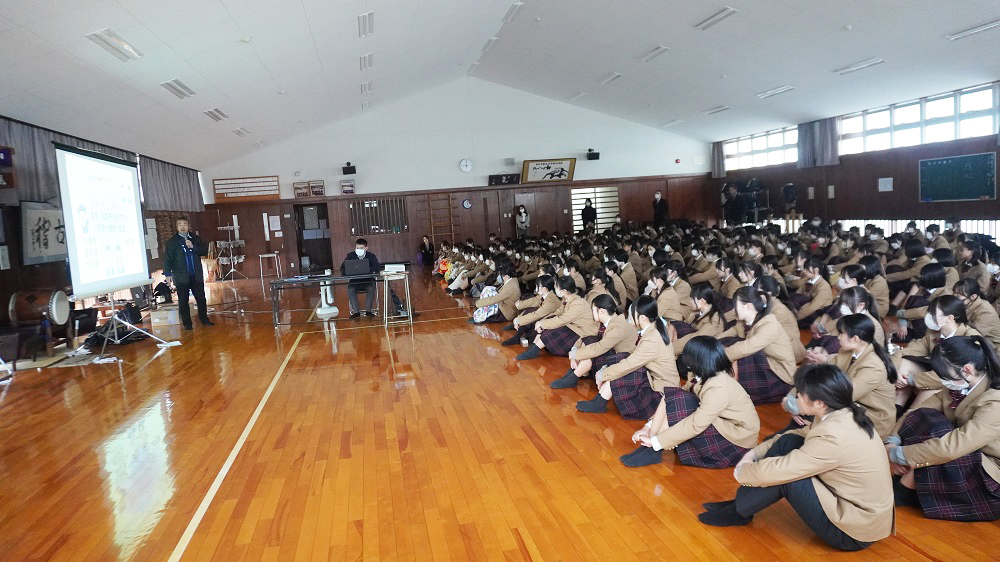 先週12月18日(木)全校生徒を対象に「モラル講座」を実施しました。今回も、思春期にある高校生がトラブルに巻き込まれないよう男女別に専門家を呼んで講義してもらいました。男子は寿(としなが)美和様が「しくじり回避術」、女子は島田警察署鈴木様が「モラル講座(被害者にならないために)」とそれぞれの演題で熱心にお話くださいました。生徒たちは2人の講師の話に真剣に耳を傾けていましたが、ぜひモラル意識を高めて健全な高校生活を送ってください。