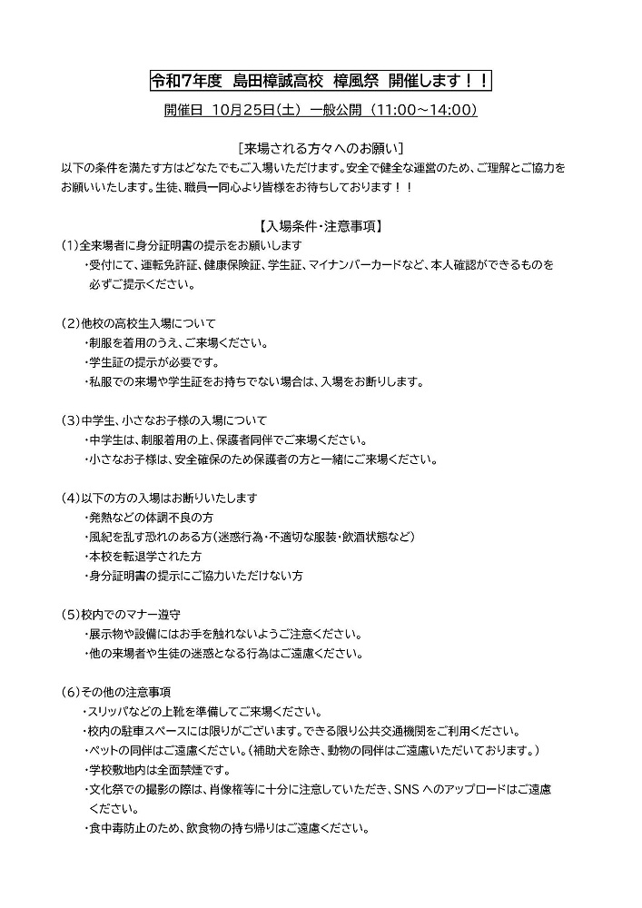 「樟風祭」10月25日(土)開催…多くの皆様の御来場をお待ちしています!