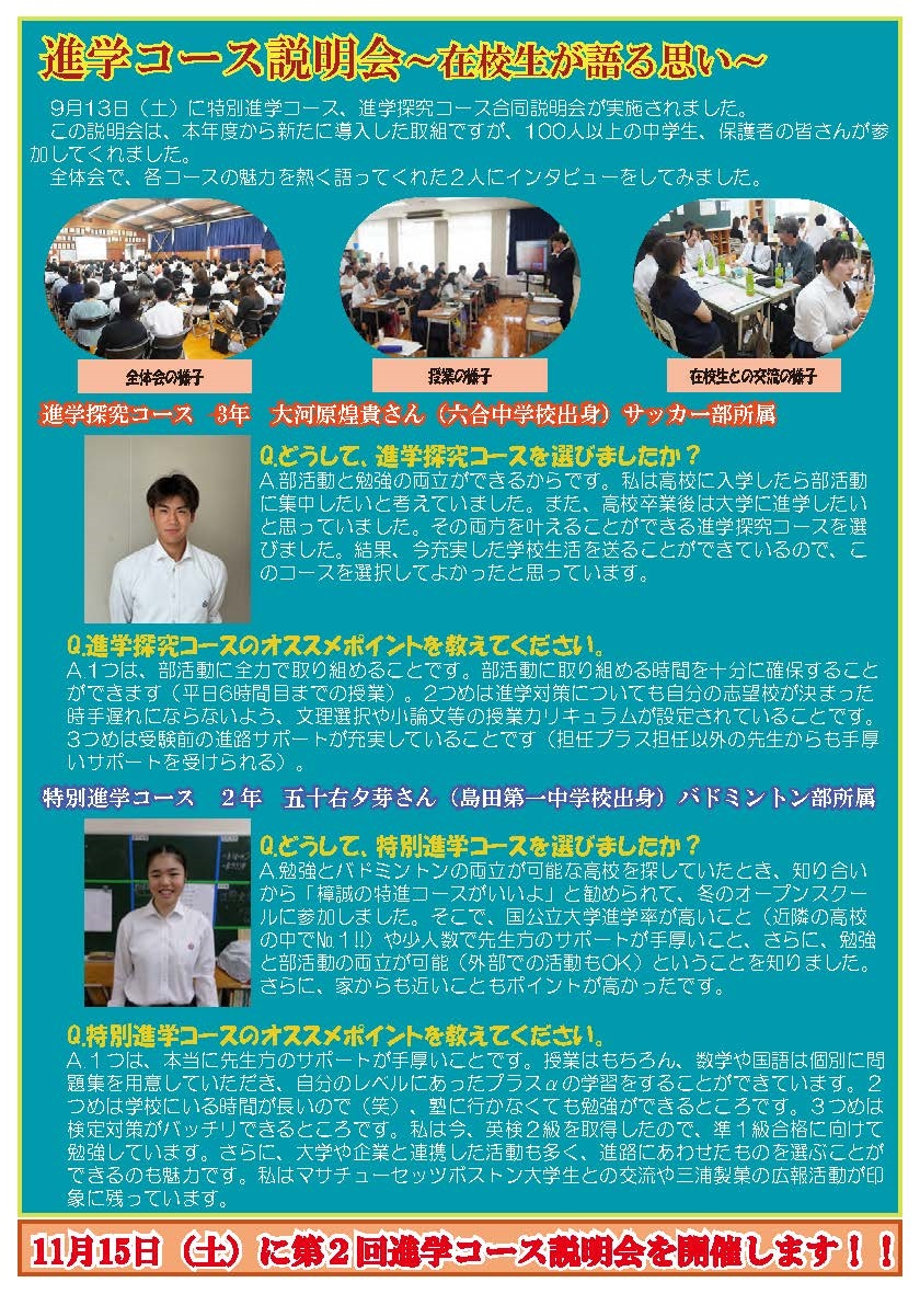 くすの木の香り(第74号)…2学期前半の樟誠高生の様子をお届けします!