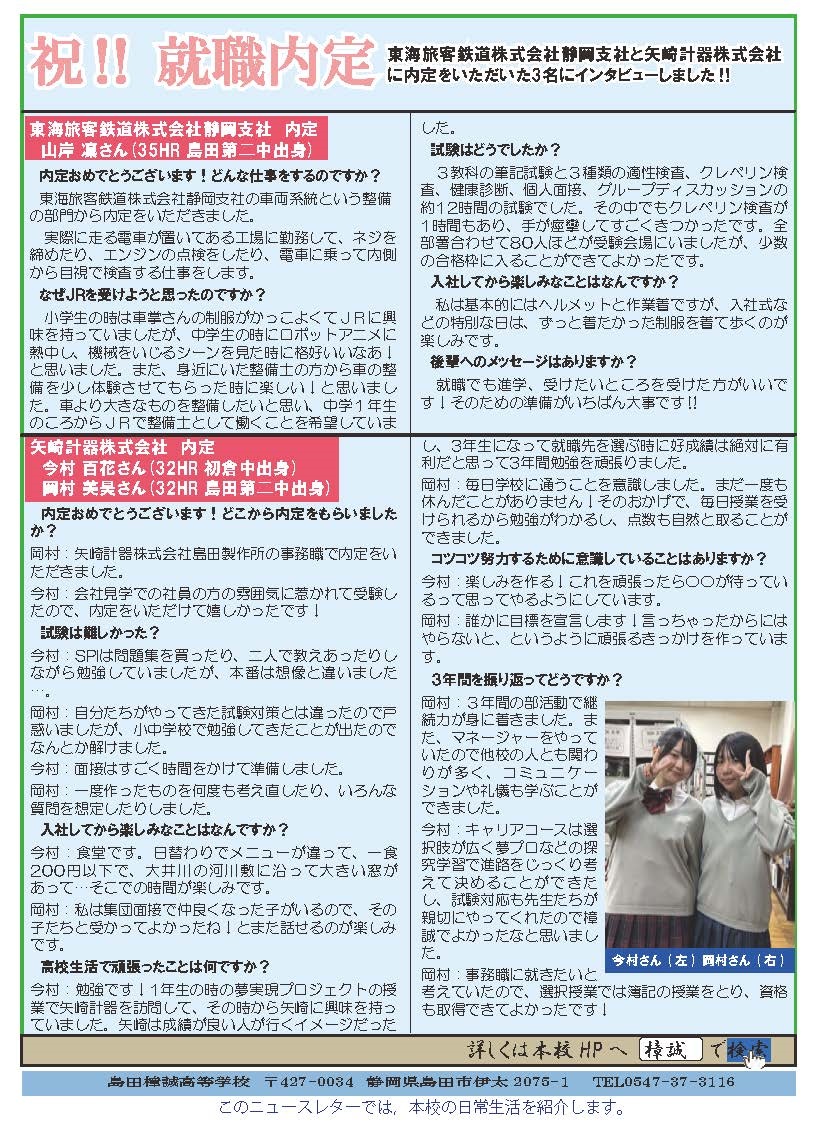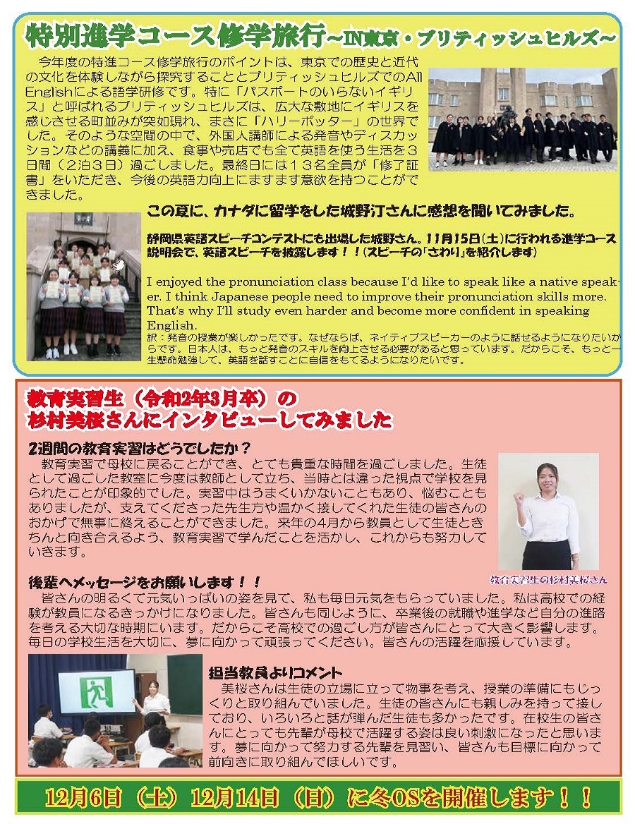 「くすのきの香り」第74号(11月1日付)を発行しました。今号では、夏休みから2学期前半までの樟誠高校のスクールライフを紹介しています。部活動での頑張り、就職内定者インタビュー、特進コース修学旅行など、生き生きした樟誠高生の様子が掲載されています。ぜひ御覧ください。