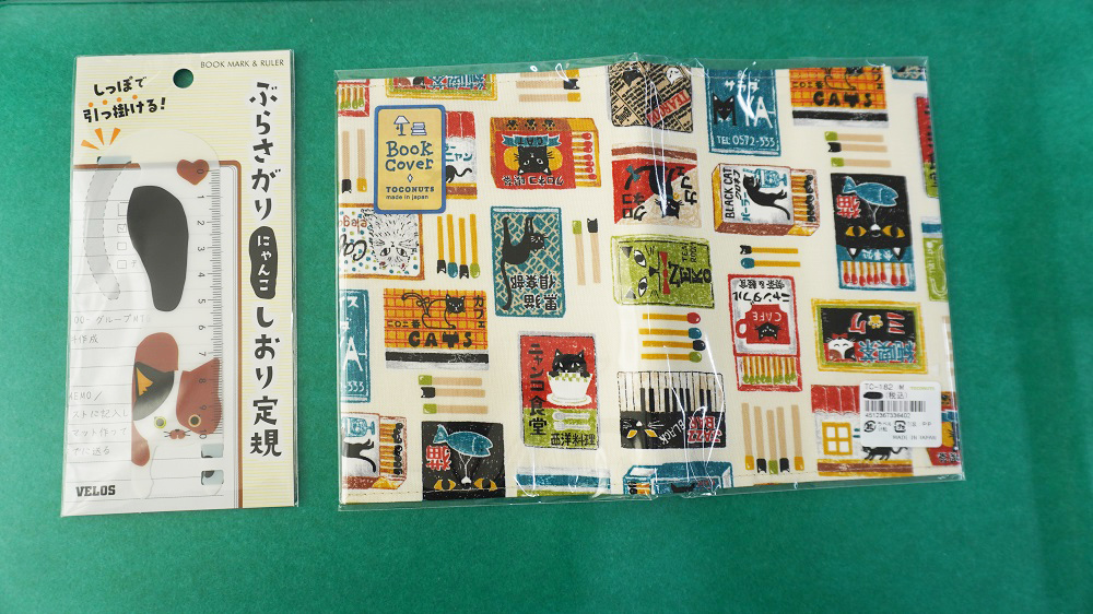 3人に記念品として贈呈されたオリジナルしおり、ブックカバー