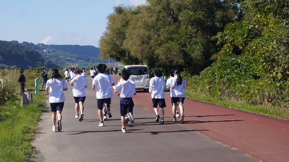 本日1114日(金)令和7年度マラソン大会が大井川河川敷リバティーで実施されました。生徒たちがチャレンジした距離は、例年同様男子10,549キロ、女子6.549キロでした。結果は男子優勝が中井涼葵君(26HR)女子優勝が山本朝子さん(37HR)でした。なお山本さんは3年間連続優勝の快挙でした。ゴール後優勝した2人に話を聞いてみました。中井君は「去年2位で悔しかったので、今年の優勝はとてもうれしいです。ただタイムが自分としては不満なので、そこは来年に向けての課題と思います。」山本さんは「3連覇できて、とてもうれしいです。走っているときは苦しかったですが、結果優勝できたので充実感いっぱいです。」とともに笑顔で喜びを語ってくれました。本日のマラソン大会は天候にも恵まれ、生徒一人一人の頑張りもあり、すばらしい大会となりました。参加した生徒の皆さん、そしてサポート役の皆さん、本日は本当にお疲れ様でした。また応援に来てくださった保護者のみなさんもありがとうございました。今回のマラソン大会を通じて、ますます島田樟誠高校の素晴らしさをアピールすることができました。