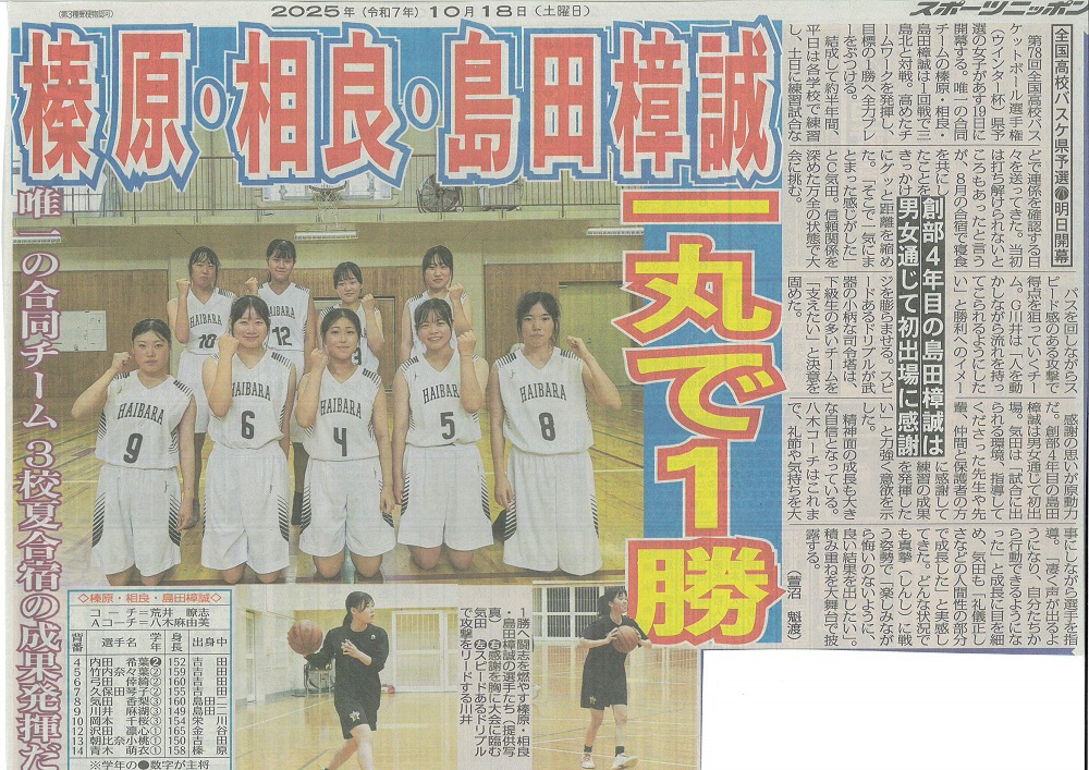 女子バスケットボール部…合同チームで全国高校選手権の県予選初出場!