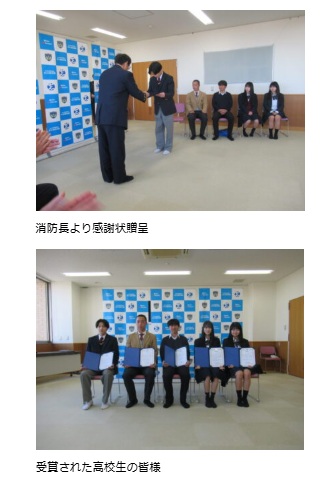 永嶋玲音君(16HR)が迅速な119番通報で消防本部より感謝状を贈呈されました!