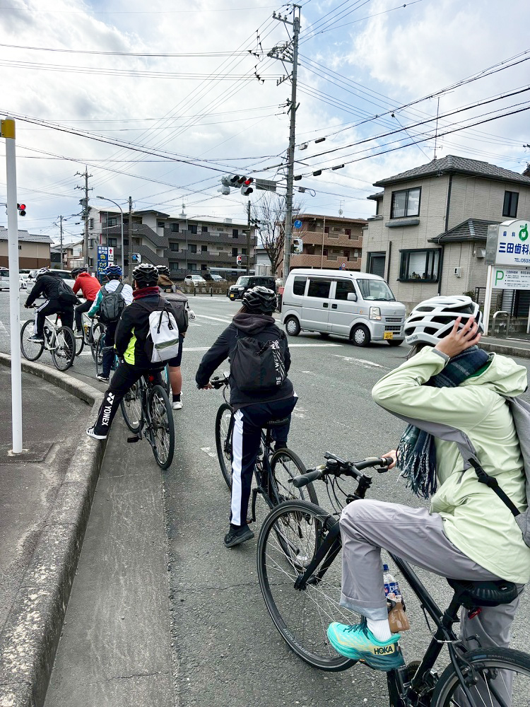 野外活動部は、1月11日(日)浜名湖でサイクリングを行いました。浜名湖を一周するサイクリングコースは「ハマイチ」とも呼ばれ、ロングサイクリングの入門コースとして知られています。しかし、当日は強風に加えて降雪もあり、決して楽な条件ではありませんでした。そのような厳しい環境の中でも、部員は52.7kmを約7時間かけて走り切りました。コースの途中には起伏の多い道もあり、苦しそうな表情を見せる場面もありましたが、山を登り切った後には大きな達成感を味わう姿が見られました。挑戦する大変さと、それを乗り越えた喜びの両方を感じられる活動となり、部員はこの経験を通して大きな自信を身につけることができました。