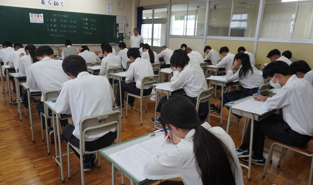 真剣にテストに取り組む生徒たちの様子①