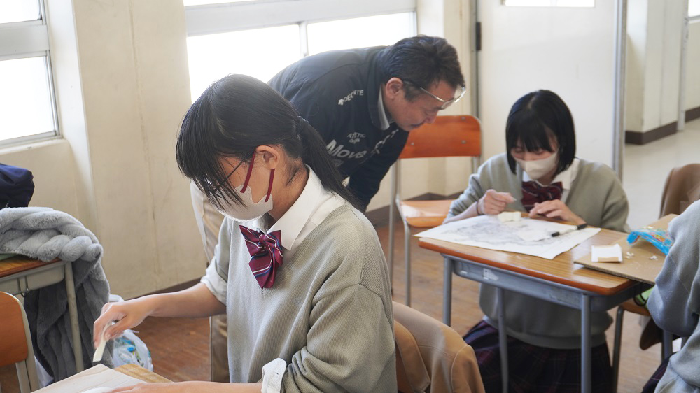 3年キャリア総合選択(社会科)…紙粘土で立体模型作りにチャレンジ!