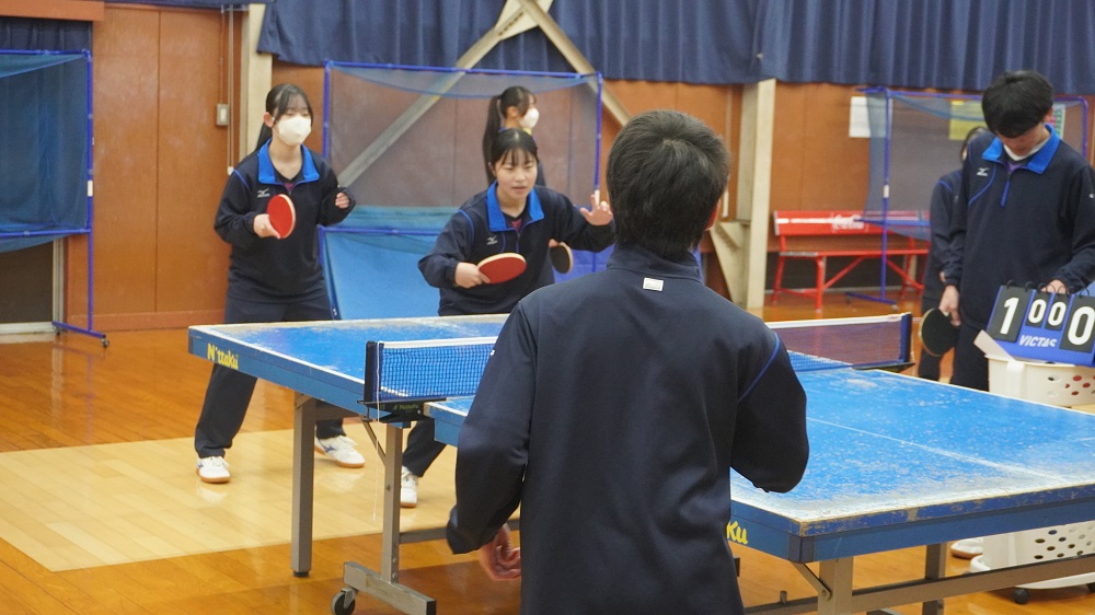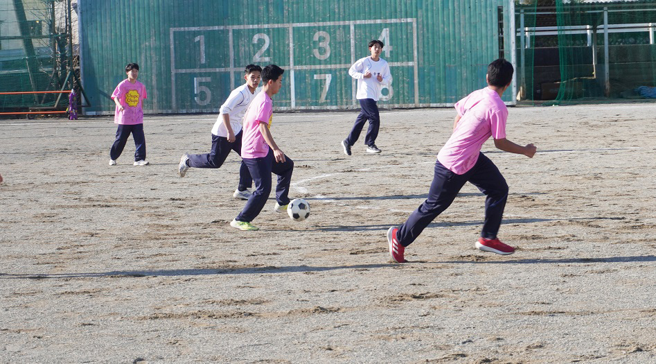 12月17日(水)学年企画として、3年生は学年球技大会を行いました。種目は、サッカー(グラウンド)、バスケットボール、バドミントン(第1体育館)、卓球(第2体育館)、室内カードゲーム(図書館)などで、生徒たちは各会場でクラス対抗戦を実施しました。冬本番の寒い中でしたが、各競技とも、寒さを吹き飛ばす熱い戦いが繰り広げられました。同時にクラスを超えての交流に笑顔の花が咲き、3年生にとって、最高の思い出作りができたことと思います。